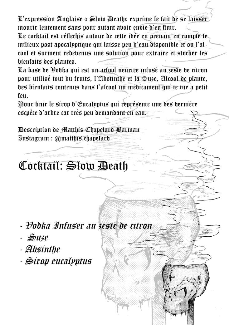 Spécificité de cette histoire, une cocktail et présent dans celle ci, qui a été créé exprès pour cette histoire et réaliser/ gouter lors d'un vernissage.